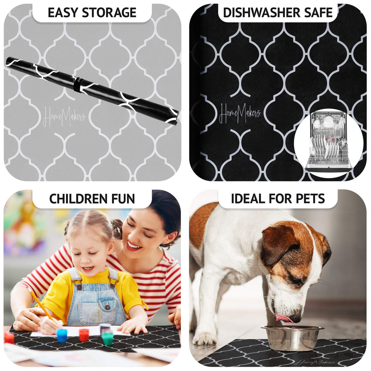 - Różnorodne Użycie: Np. jako mata ochronna na płytę indukcyjną, podkładka do prac plastycznych dla dzieci, mata ochronna pod miejsce do jedzenia dla zwierząt domowych, podkładka pod sprzęty kuchenne jak mikser, mikrofalówka, ekspres do kawy.
