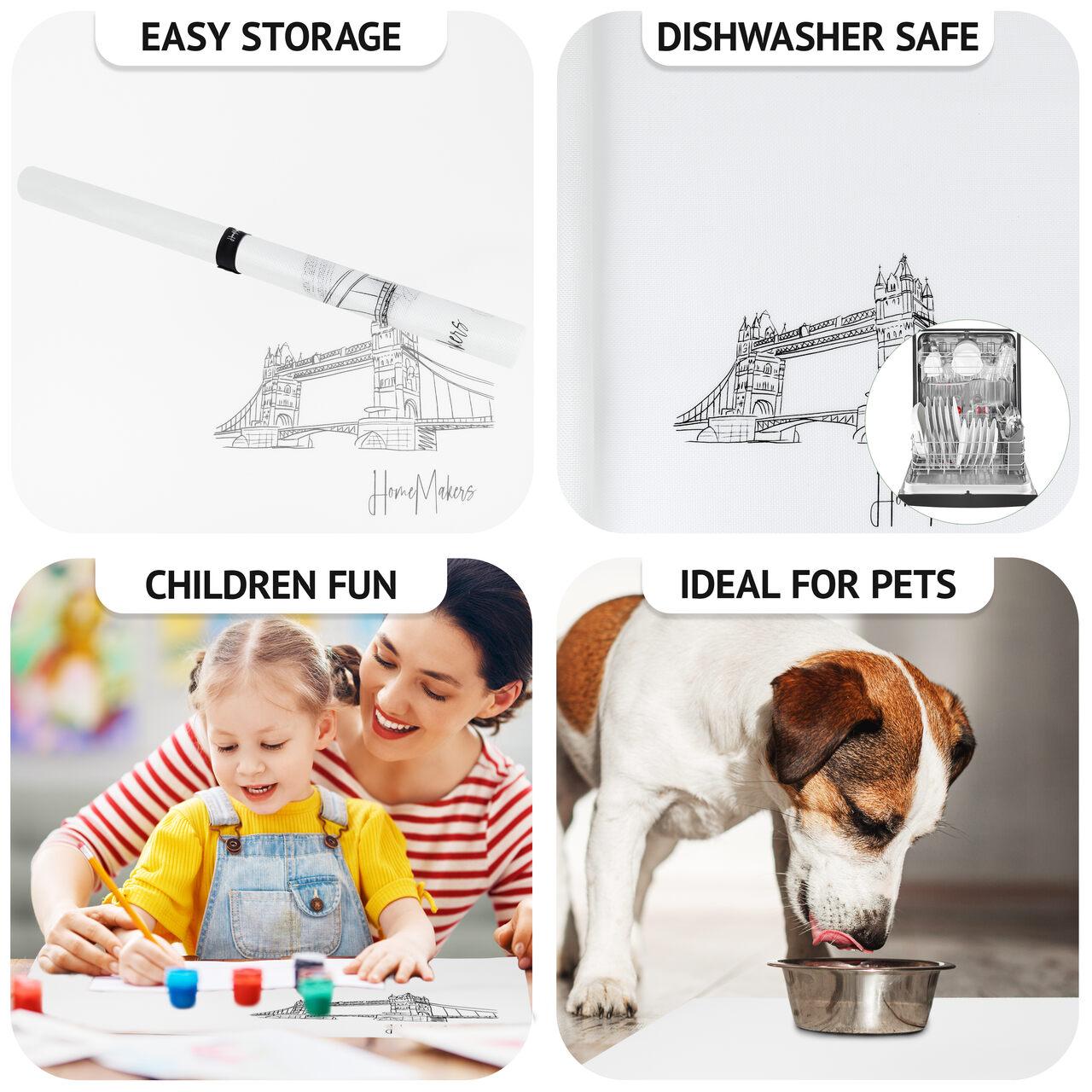 - Różnorodne Użycie: Np. jako mata ochronna na płytę indukcyjną, podkładka do prac plastycznych dla dzieci, mata ochronna pod miejsce do jedzenia dla zwierząt domowych, podkładka pod sprzęty kuchenne jak mikser, mikrofalówka, ekspres do kawy.